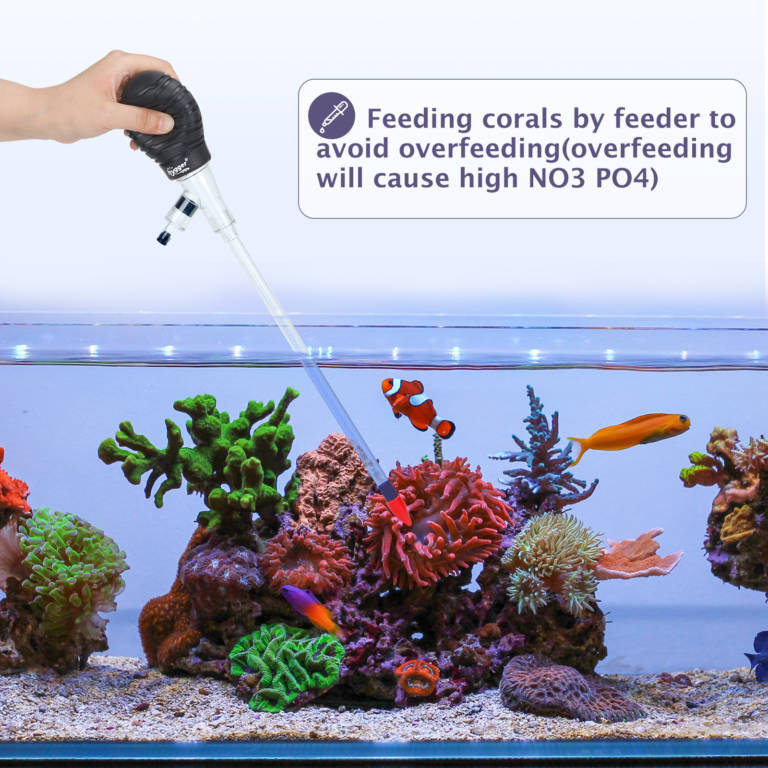- Alimentación localizada: boquilla especializada para administrar fitoplancton o comida líquida directamente a corales, anfípodos, camarones o peces pequeños